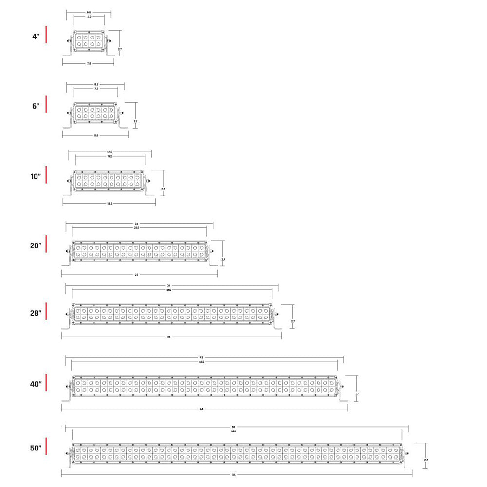 The E-Series is one of RIGID's most versatile, all-around lighting solutions, and recent enhancements in LED technology delivering up to 111% more raw lumens than ever before with the E-Series PRO. Among RIGID's most popular product lines, the E-Series PRO has recently benefited from several upgrades to improve both looks and performance. Plus, new branding and new blacked-out circuit boards give the E-Series PRO a more refined look. Available with your choice of optics, the E-Series features a host of beam options, including Spot, Flood, Driving, Hyperspot, Diffused, and new Driving/Spot and Spot/Hyperspot combinations. These and other innovations make it one of the brightest and most efficient LED light bars on the market. The E-Series was born in off-road, but its versatility makes it well suited for use with power sports, marine, general automotive and even first responder applications.